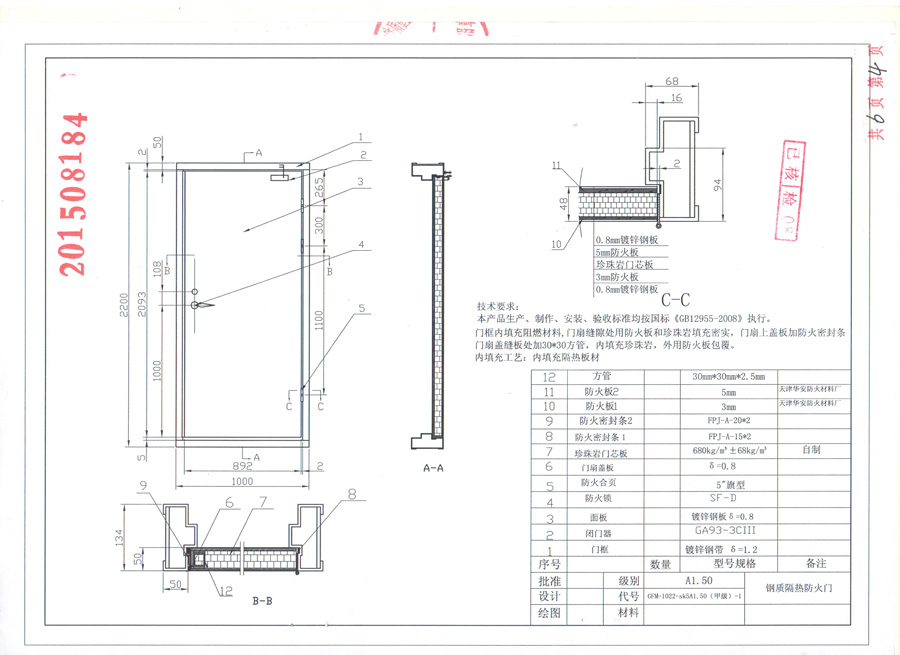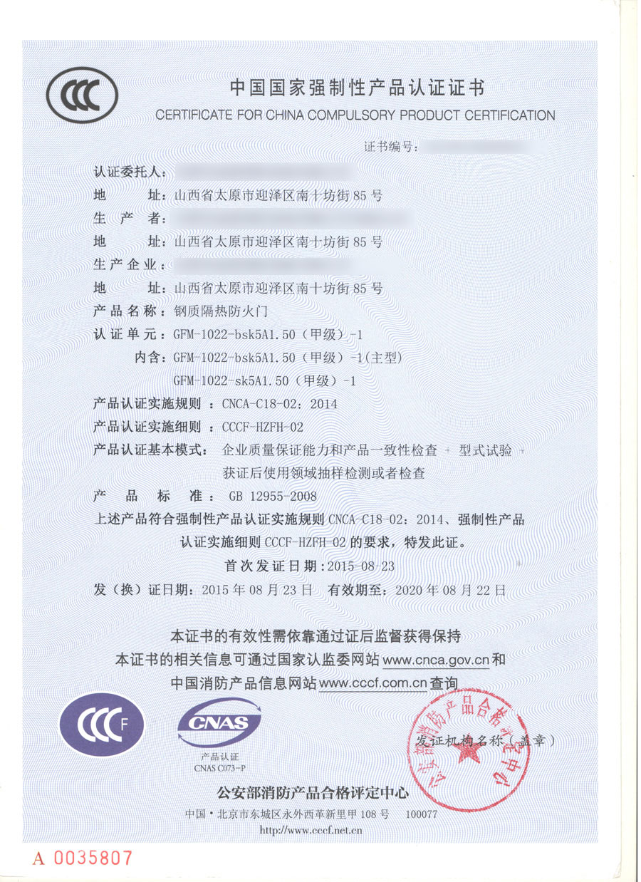 鋼質(zhì)甲級(jí)單開(kāi)防火門